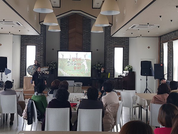 설명회 시작을 알리는 색소포 연주 다음으로 코북이 동화 '점박이 도티라도 좋아'의 생상스 예술이