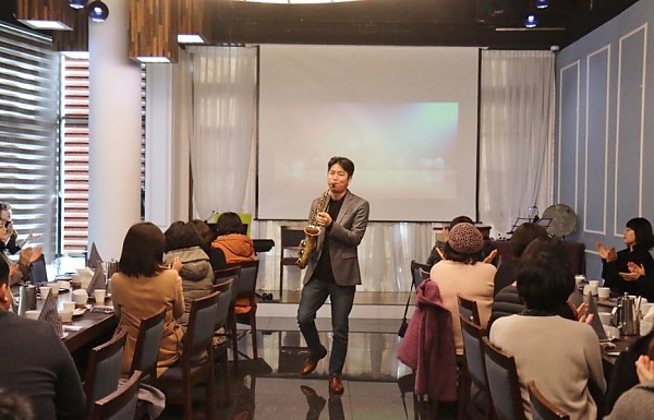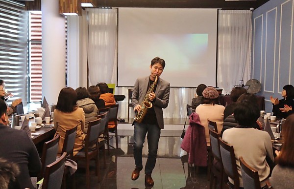 설명회 시작 전에 앞서 색소포니스트 분께서 멋진 색소폰 연주를 보여주셨어요.