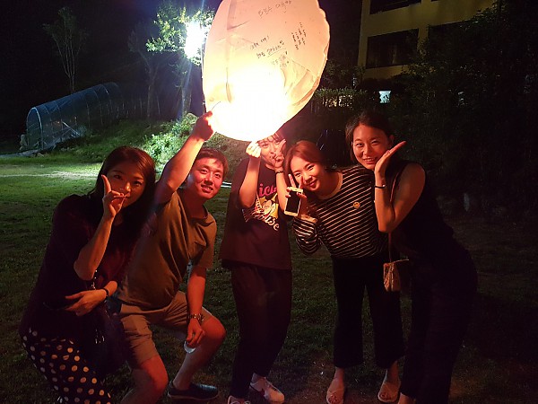 해가 저문 뒤에는 부서별로 모여 소원을 쓴 연등을 함께 띄우고