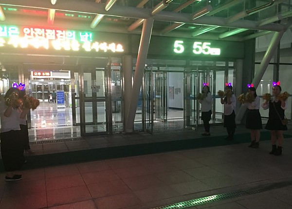 입구에서 환영인사를 하고 계셨어요!