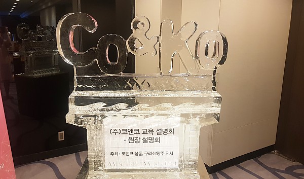 멋진 코앤코 얼음조각과 코북이 책들이 예쁘게 진열되어