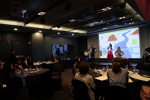 본격적인 설명회 시작에 앞서, 유명 아코디어니스트 알렉산더 쉐이킨의 감미로운 연주가 이어졌습니다.